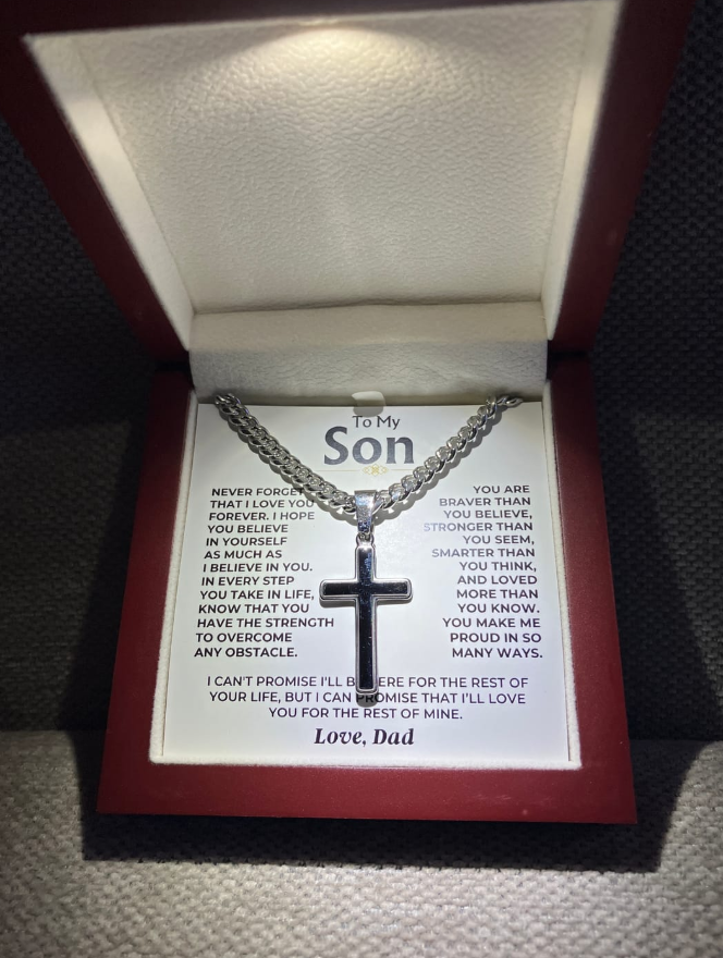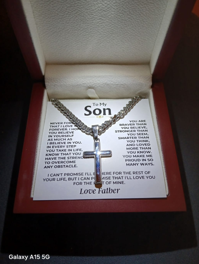 Für meinen Sohn - Liebe Papa - Handgefertigtes Kreuz an kubanischer Gliederkette - Geschenkset