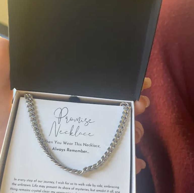 This necklace was 10/10. The words were so meaningful and the quality of the necklace was perfect. It was just a great gift “just because” gift. The shipping was also super fast which is nice!