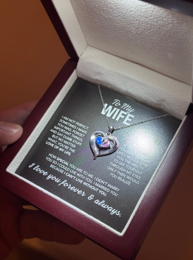 I surprised my wife with this necklace, and her reaction was priceless. She loves it and never takes it off!Daniel S.